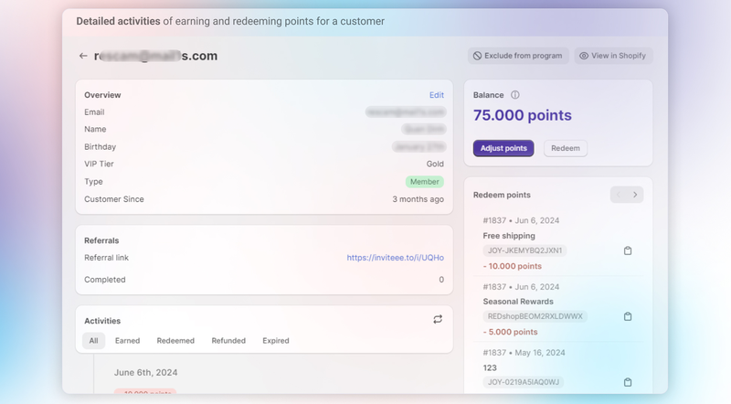On the left, you can click "**Adjust points**" to change customer ìnormation