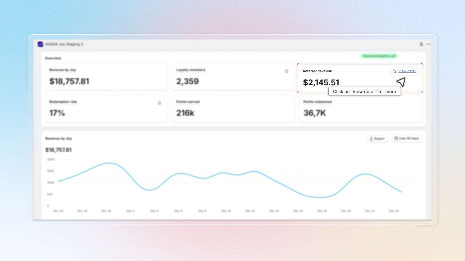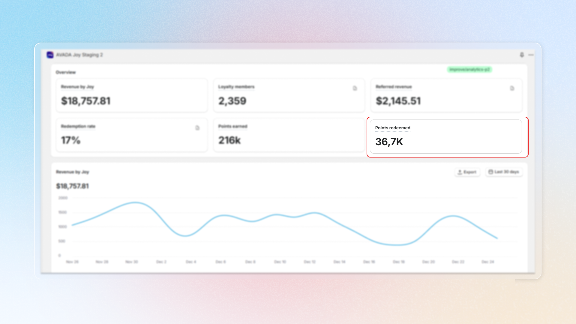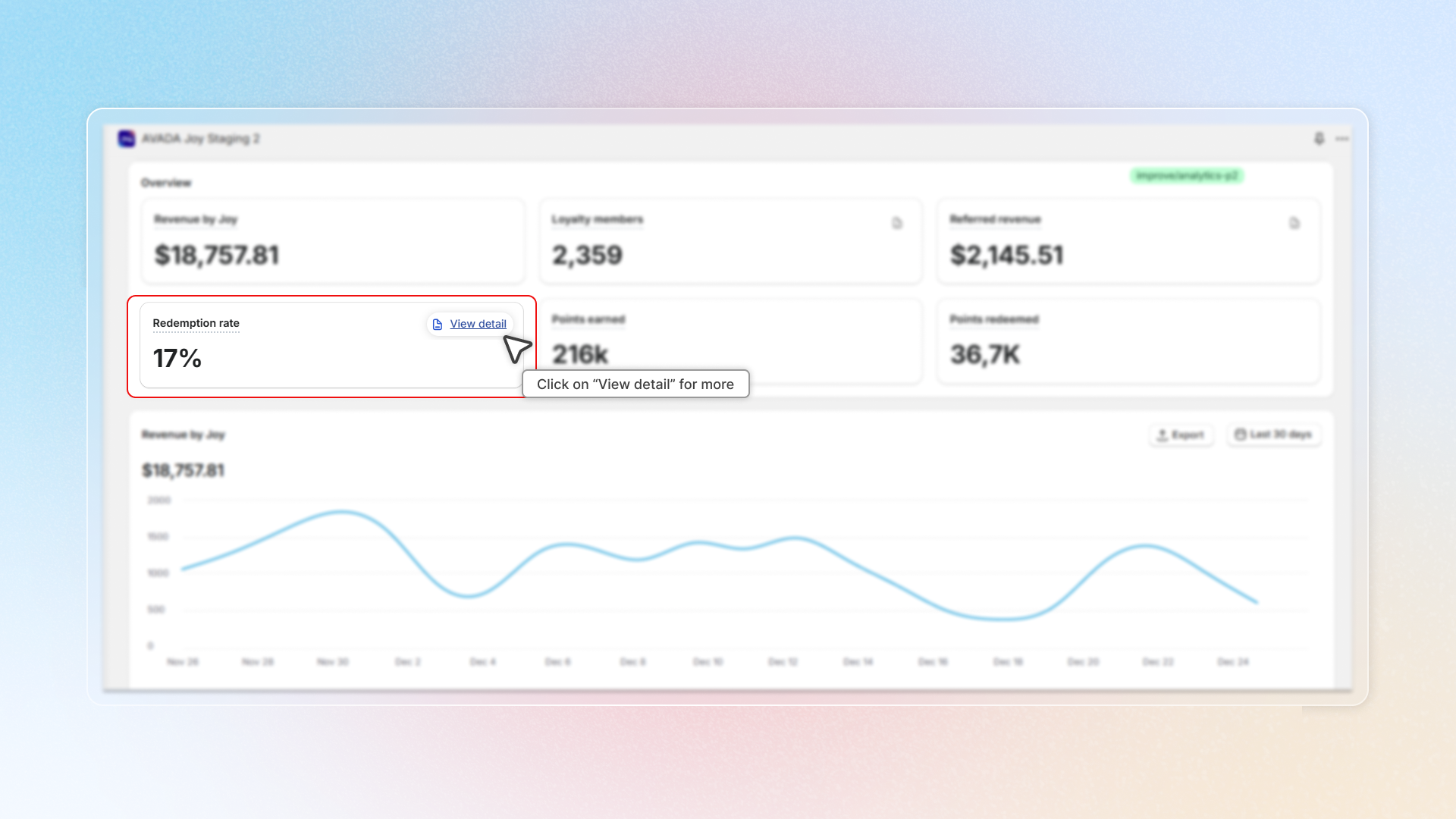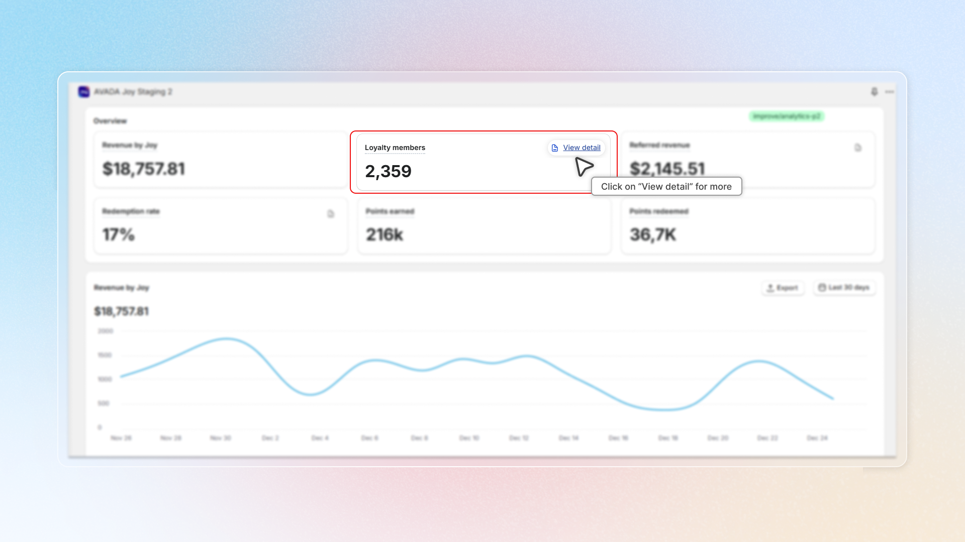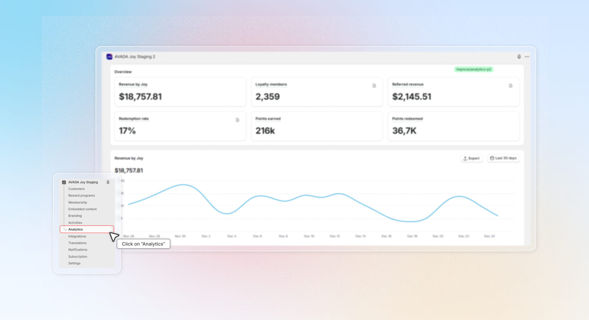 Go to the **Joy: Loyalty Program** app and click on "**Analytics**" in the left-hand menu.