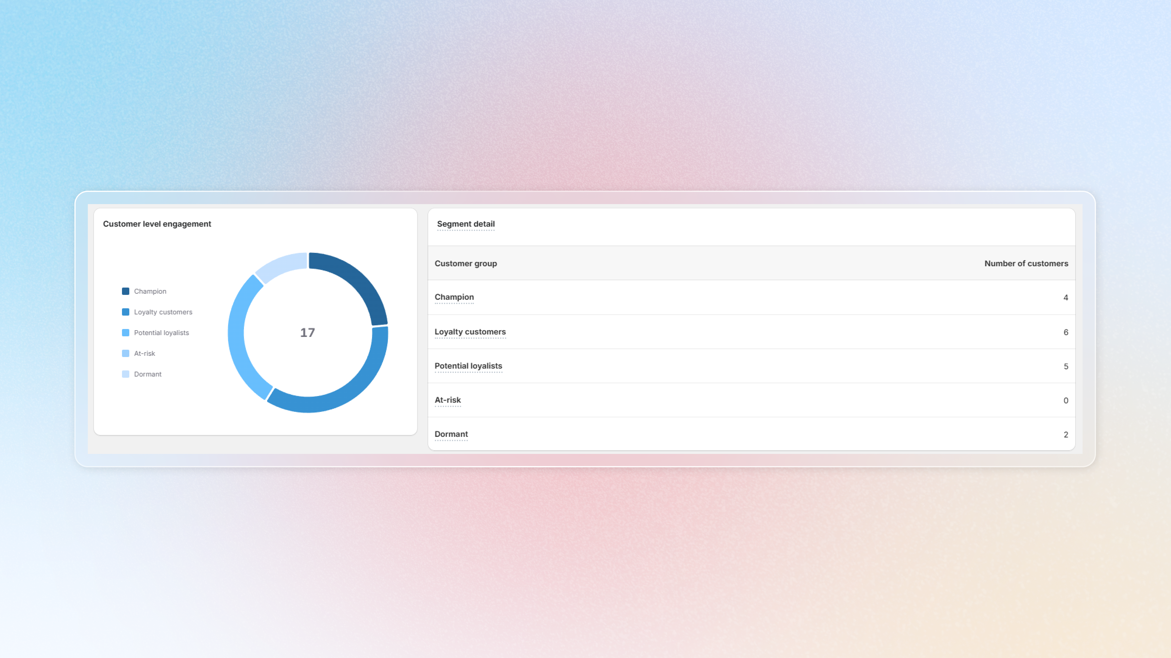 Scroll down you will see the **Customer level engagement** to track behavior, measure program effectiveness, personalize experiences, and optimize strategies for better loyalty and retention (how many members in each tier and members are at risk and dormat (reduce activity and value, and minimal participation)