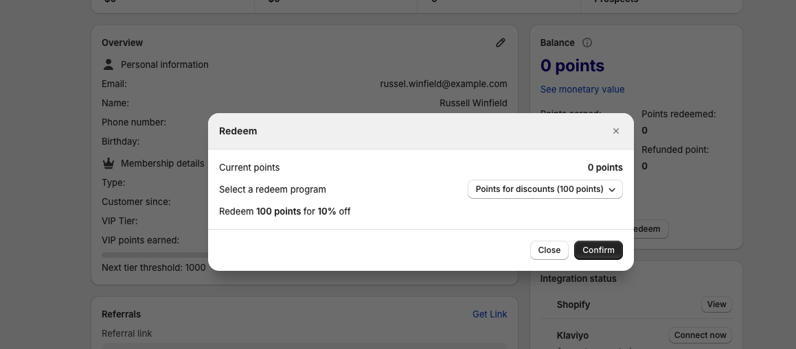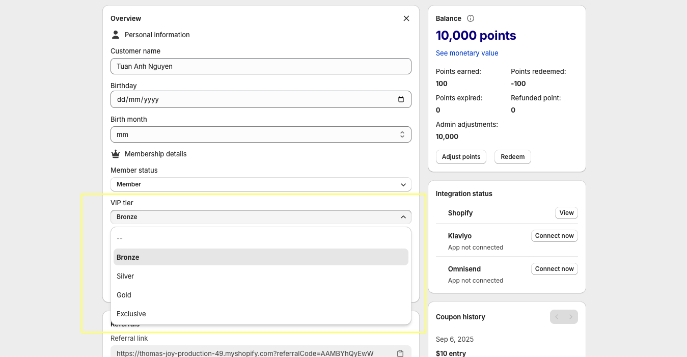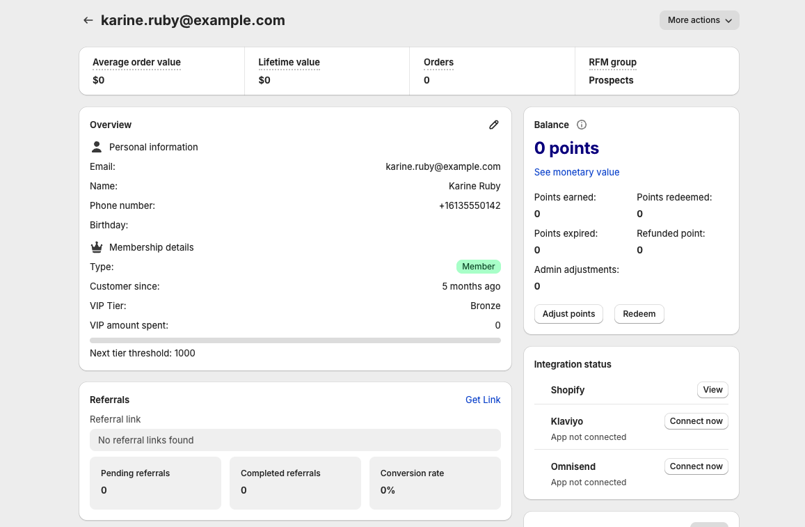 This is where you can review their entire journey, correct mistakes, manage points, and ensure all data is synced properly across Shopify and your integrations.