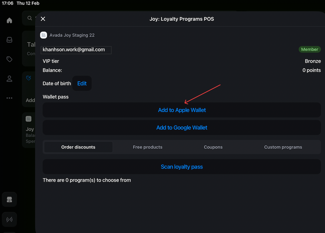 A step-by-step guide for store staff to help customers add their Joy Loyalty pass to Apple Wallet or Google Wallet directly in POS