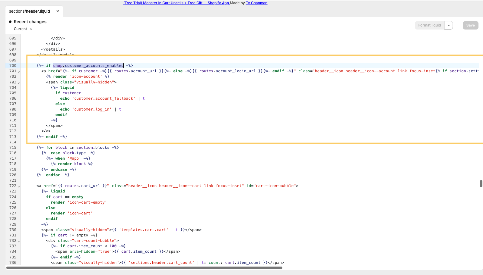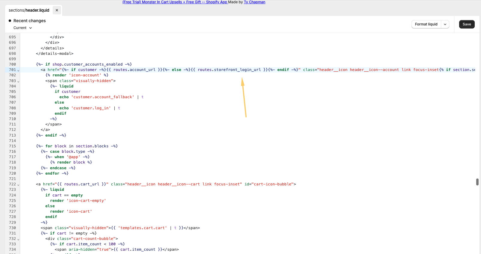 Most of the Shopify themes have a `headers.liquid` file, in this file you search for this block of code. And notice the `routes.account_login_url` , this is the variable that is responsible for redirecting the customer post-login. You can change this behavior by updating the [other variables here](https://shopify.dev/docs/api/liquid/objects/routes).