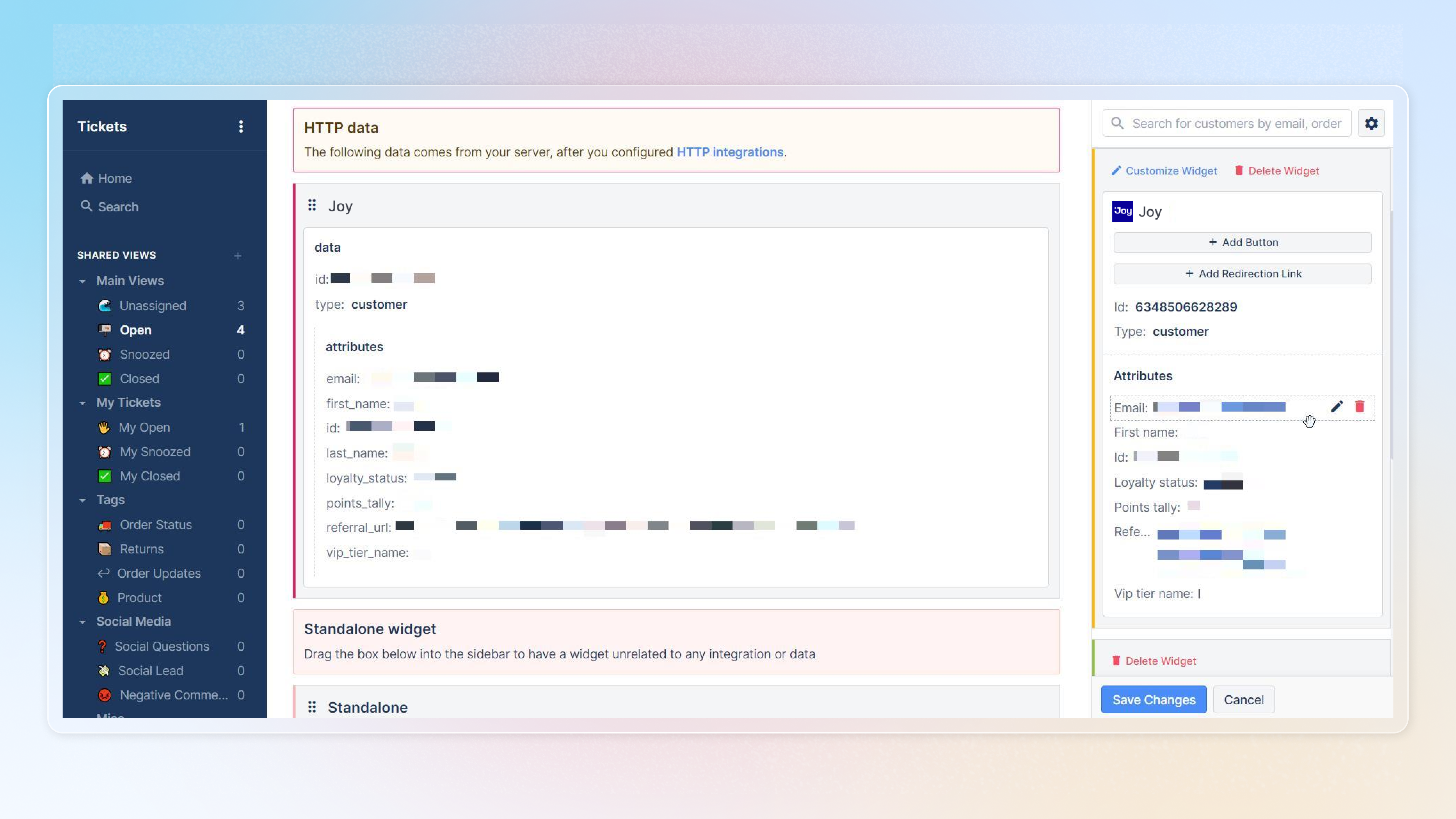 The widget will dynamically load per ticket providing the Loyalty data of the customer if they are enrolled in your Loyalty program. The Loyalty data can be also displayed on each customer profile page.
