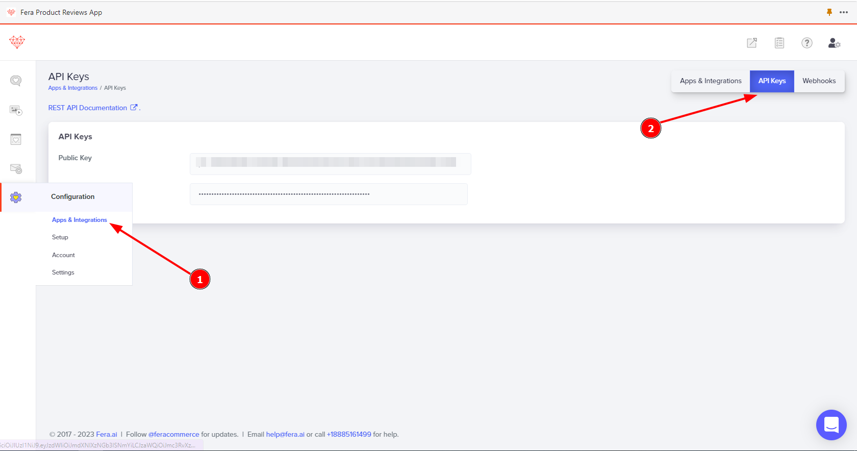 * Access Fera app > go to Settings page > App & Integrations > select API Keys