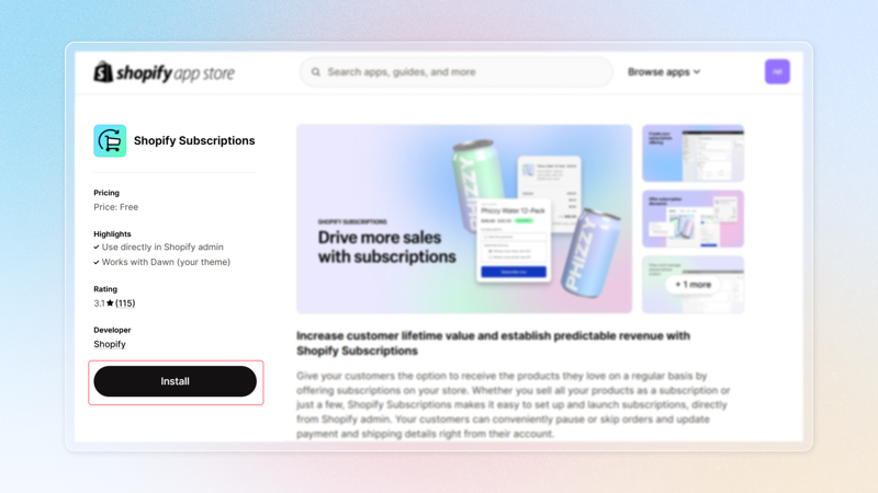 Turn on connection next to Shopify Subscription. If successful, a Connected tag will appear