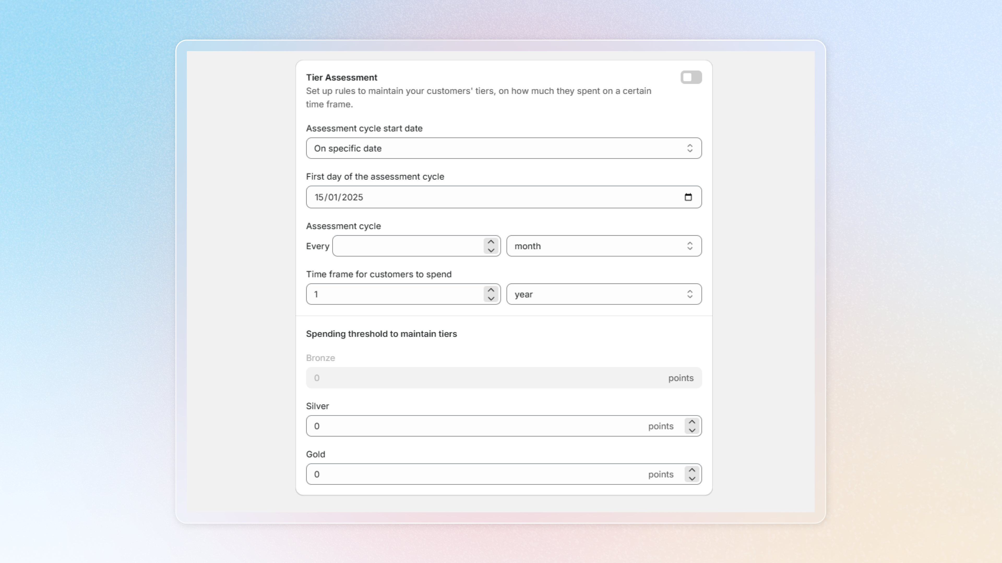 **Tier reset**: Automatically reset the tier of all customers at the selected time