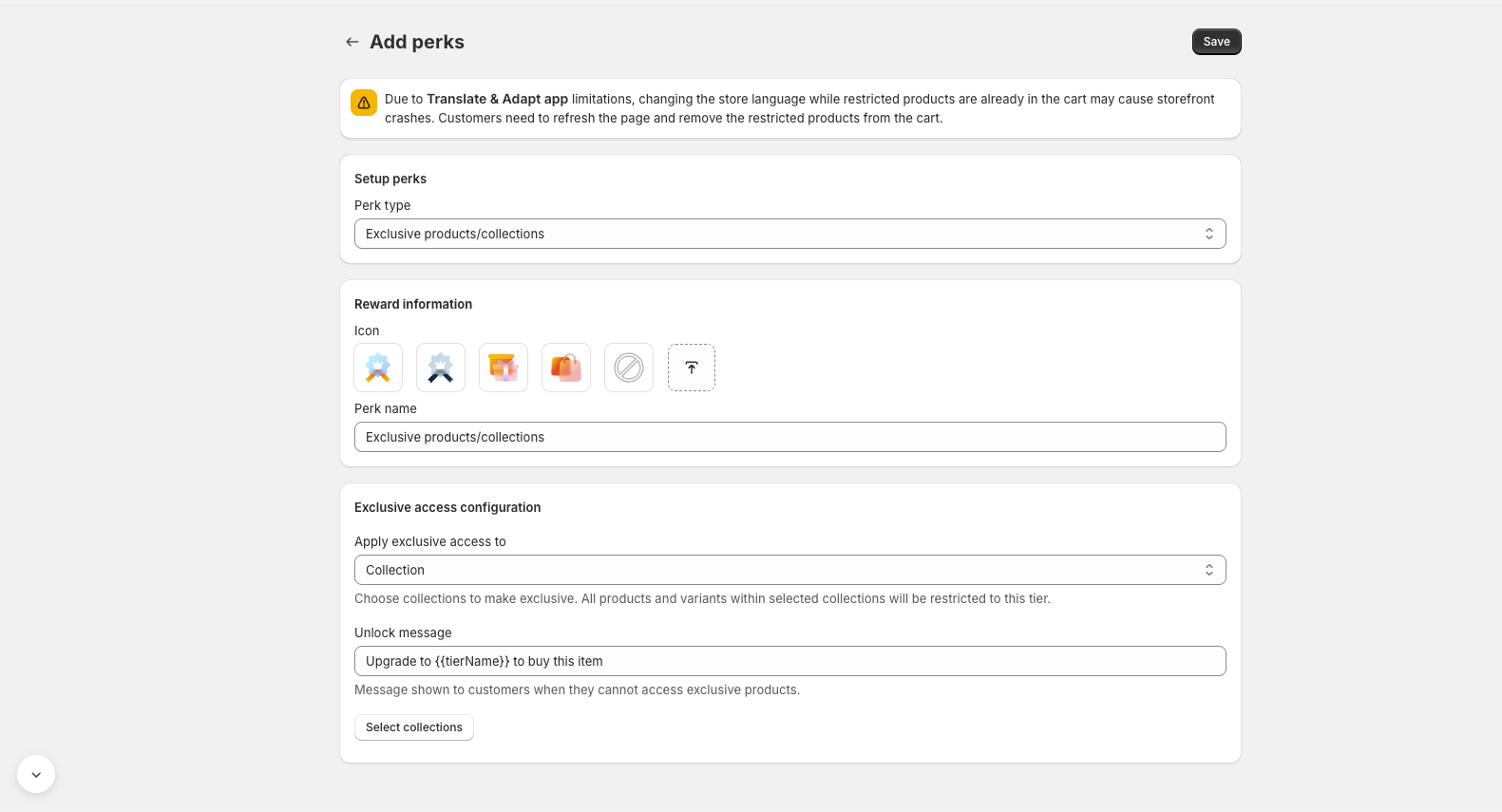 4. In **Perk type**, choose **Exclusive products/collections**.