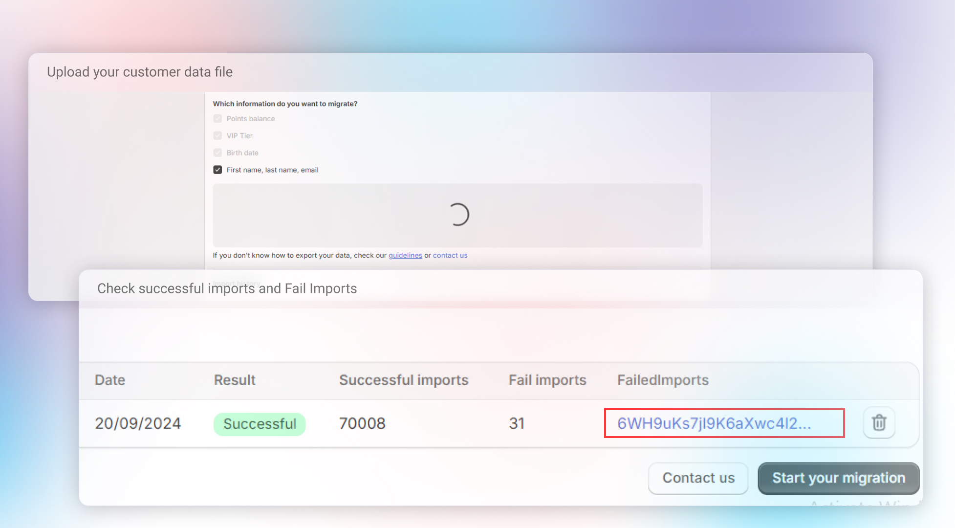 * **Failed Imports:** Number of customers not migrated due to errors.