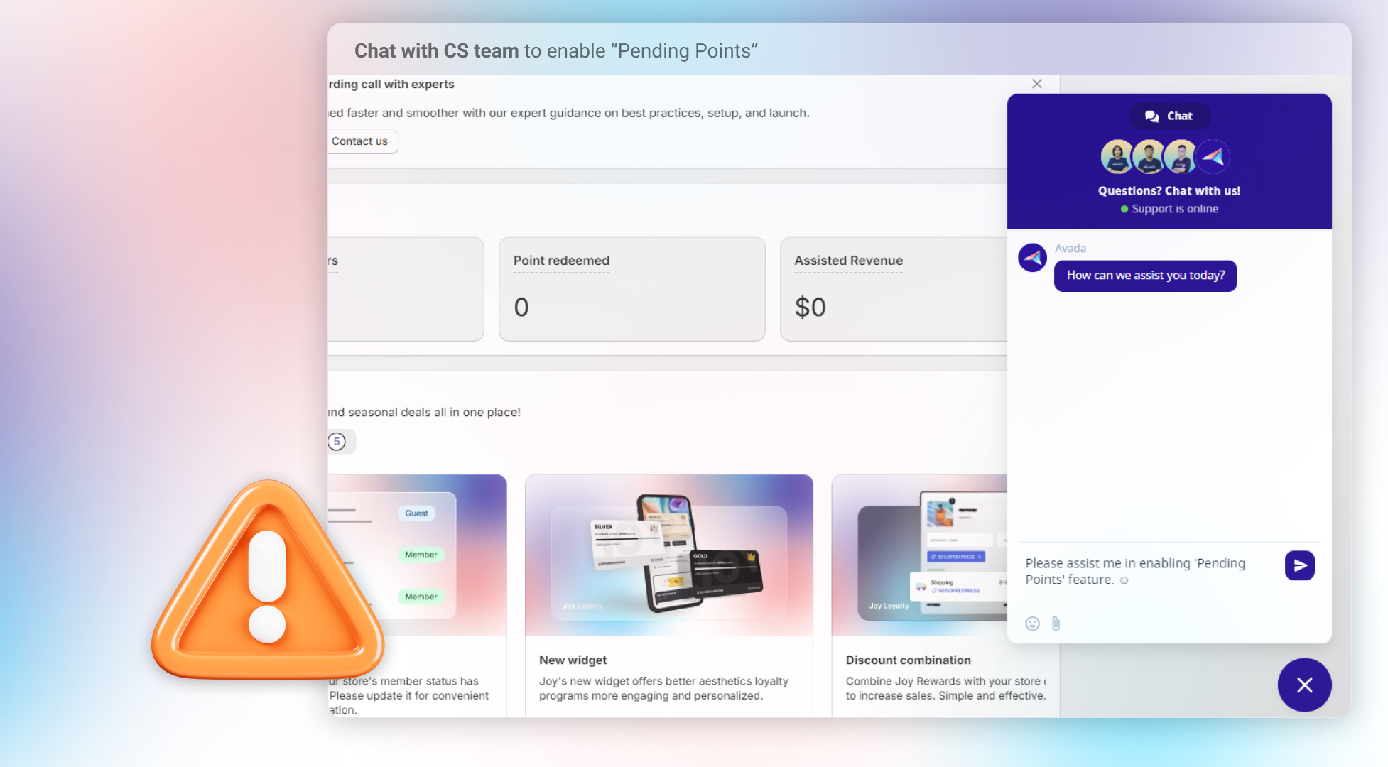 Pending Points used to require Support to enable it. From April 2026, merchants on **Advanced or Ultimate** can turn it on themselves inside the Joy admin — no ticket needed.