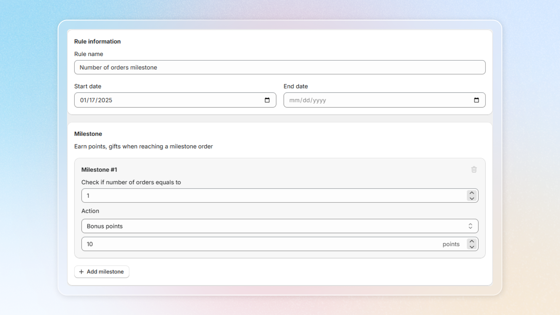 If you don't have any milestone rewards yet, click **Add rule** to start the setup