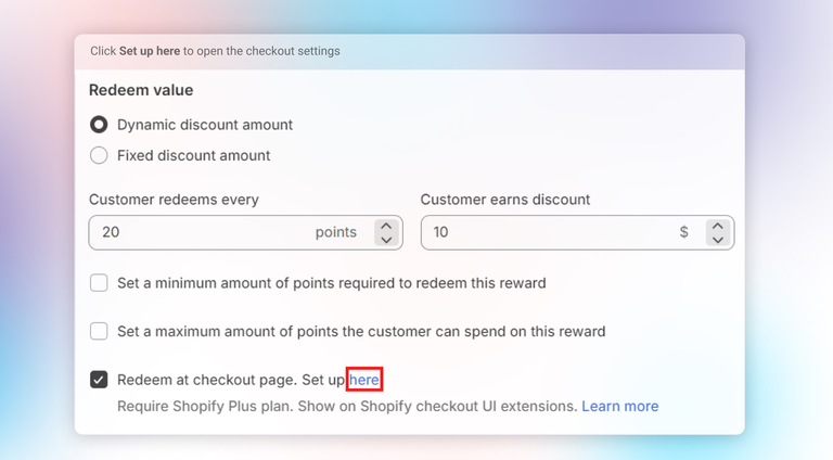 Click "**Set up here**" to access the checkout settings.