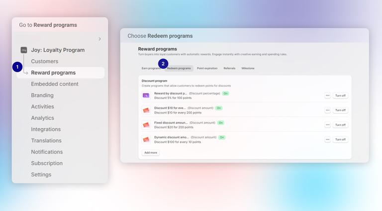 Click "**Reward programs**" in the navigation bar, then choose "**Redeem programs**". Choose any discount program.