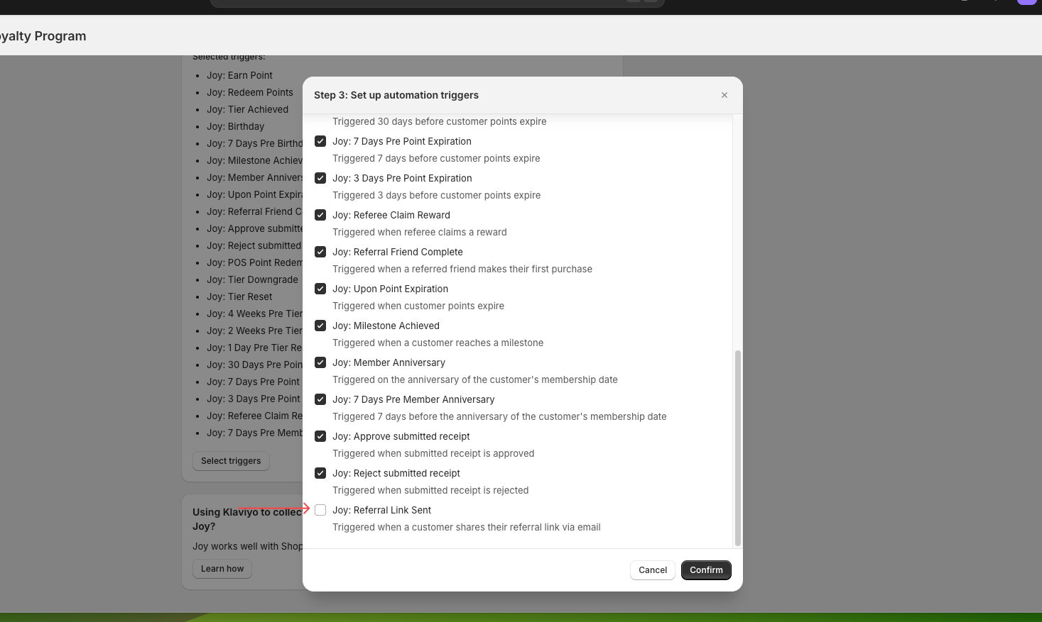 See [Joy and Klaviyo](https://help.joy.so/integrations/email-marketing-and-sms/joy-and-klaviyo) for integration setup.