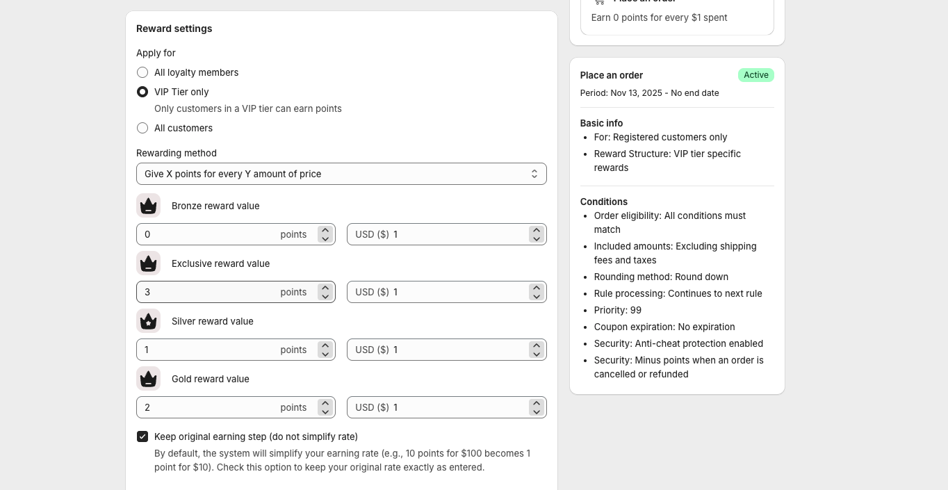 This approach gives you full flexibility over each tier's earning logic - you can set a different rate, a bonus point amount, a different product scope, or a different reward type per tier, all independently.