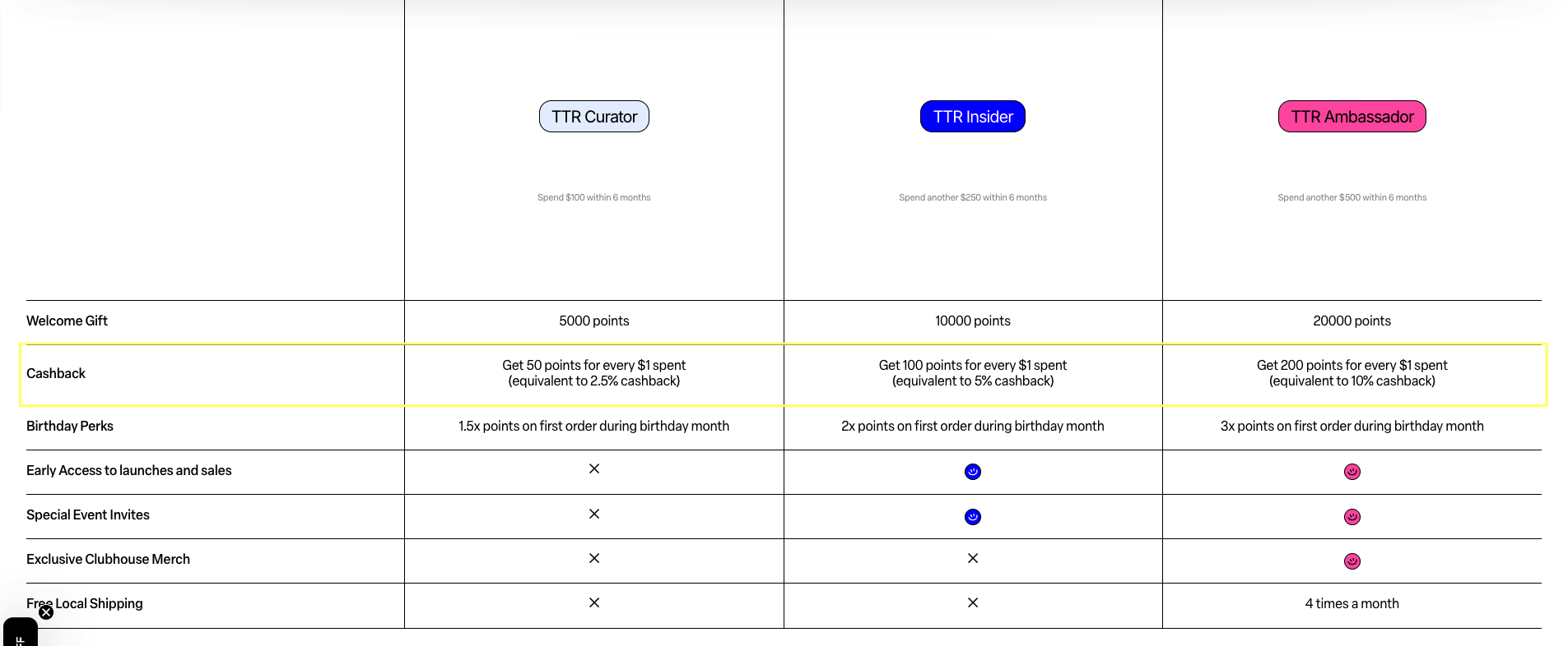 * **Program C** - filter: Gold tier → earn 3 points per $1 spent
