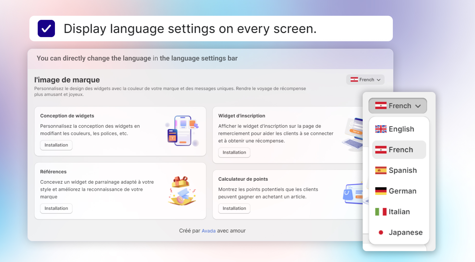 If you check the box **"Display language settings on every screen."** then the Language Settings Bar will appear in all settings screens. You can directly use this bar to change the language without going into settings.